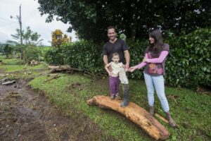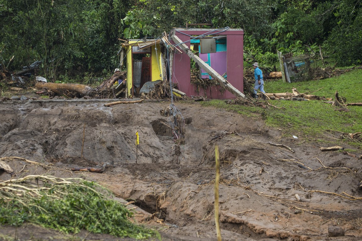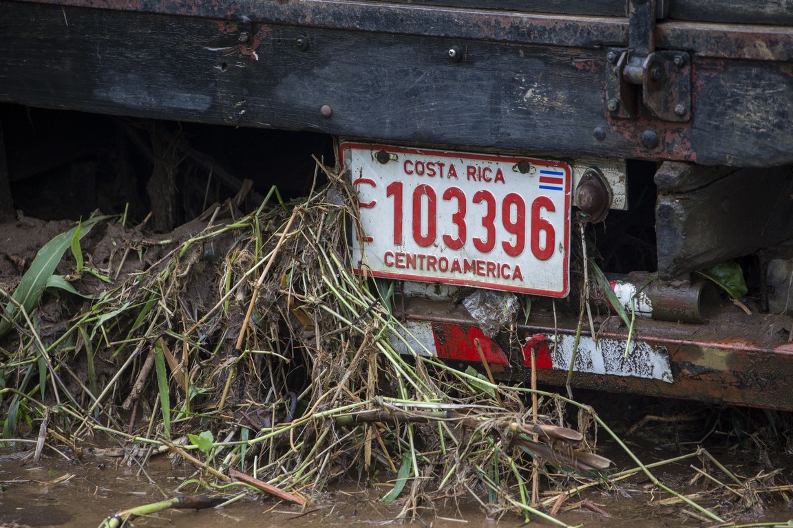 Sur la route nous observons l’étendue des dégâts, les coulées énormes, les maisons emportées, les voitures broyées. On compte 6 morts sur la commune de Bijagua. Arrivés à la halle du village, on nous offre à boire et à manger. Finalement, après une heure d’attente, Warner vient nous récupérer, il nous explique que des avions ont survolé la zone et qu’il n’y a plus de risques de glissements de terrains. Mais nous serons plus en sécurité dans la maison de son père, au cœur de Bijagua car cette partie du village n’a pas été touché et est très éloignée de la rivière. Les parents de Warner, Manuel, âgé de 84 ans, et Irene, âgée de 82 ans, parents de 11 enfants nous offrent le gîte et le couvert, ils nous accueillent à bras ouverts. Toute la famille est là, on nous propose de nous doucher, on nous installe des matelas, nous passerons la nuit ici. Le lendemain matin à l’aide d’un tractopelle, la famille de Warner arrive à dégager le passage pour que nous puissions récupérer les véhicules. Des équipes de secours et la police recherchent toujours le corps d’une petite fille qui ne sera retrouvée qu’en fin de journée soit 2 jours après la catastrophe. 3 jours après la catastrophe, un nouveau corps est retrouvé, ce qui porte le bilan à 7 morts. Il faudra des mois avant un retour à la normale.